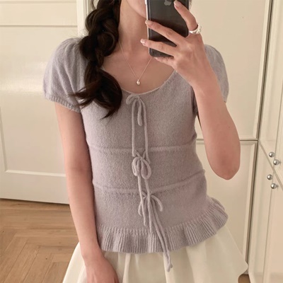 - on.[NT643]리본프릴퍼프반팔니트