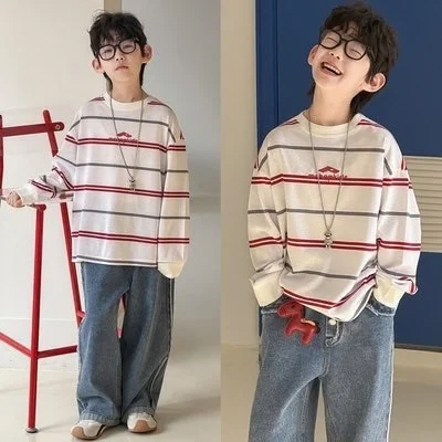 # 스트라이프티셔츠+데님바지SET