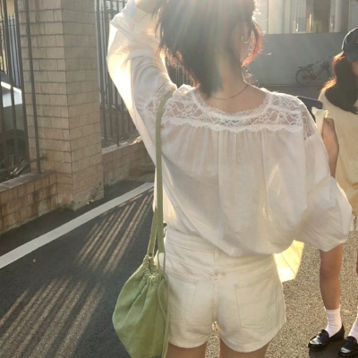 on.[BL673]시스루레이스루즈핏블라우스