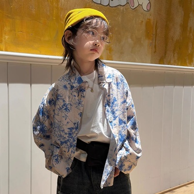 비다이어리.비티블루플라워남방셔츠
