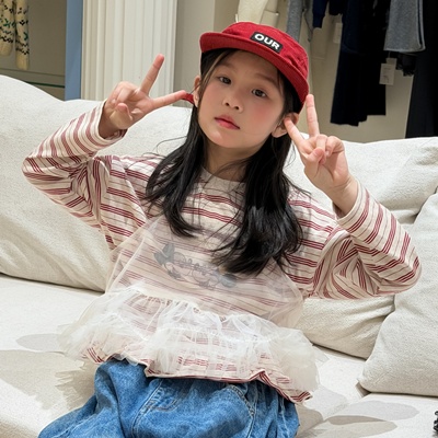 비다이어리.레드단가라티셔츠레이스뷔스티에세트