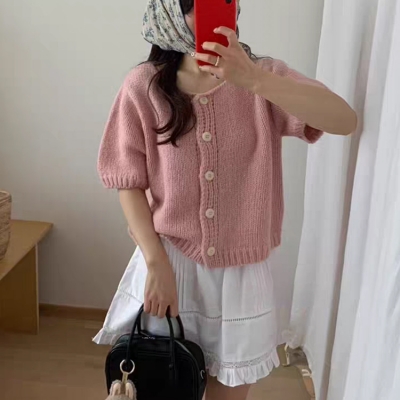 on.[CD616]라운드반팔미니가디건