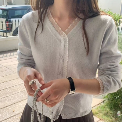 on.[CD630]프릴망사레이어드가디건