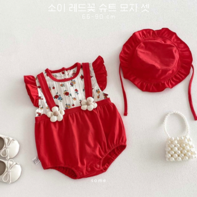 [수입] 소이 레드꽃 슈트 모자 셋 (-4/23마감)