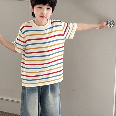 비다이어리.알록단가라반팔티셔츠