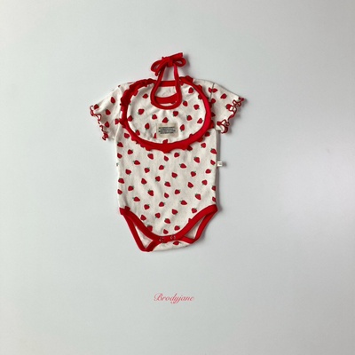 브로디제인.아일렛딸기반팔바디슈트